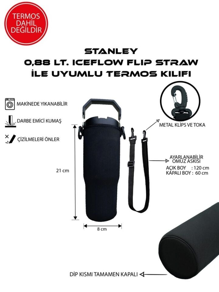 0.88 LT. ICEFLOW FLIP STRAW STANLEYE UYUMLU OMUZ ASKILI TERMOS KILIFI
