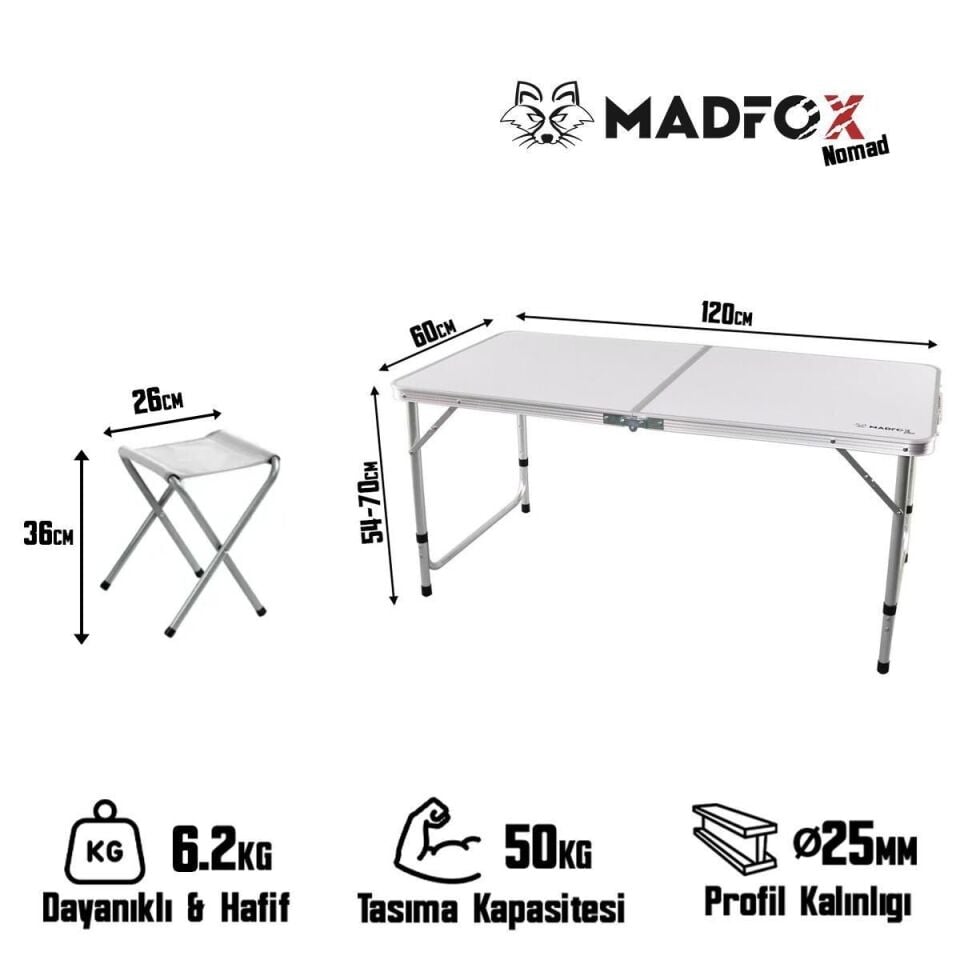 Madfox Nomad Duo Tabureli Katlanır Kamp Masası Seti BEYAZ