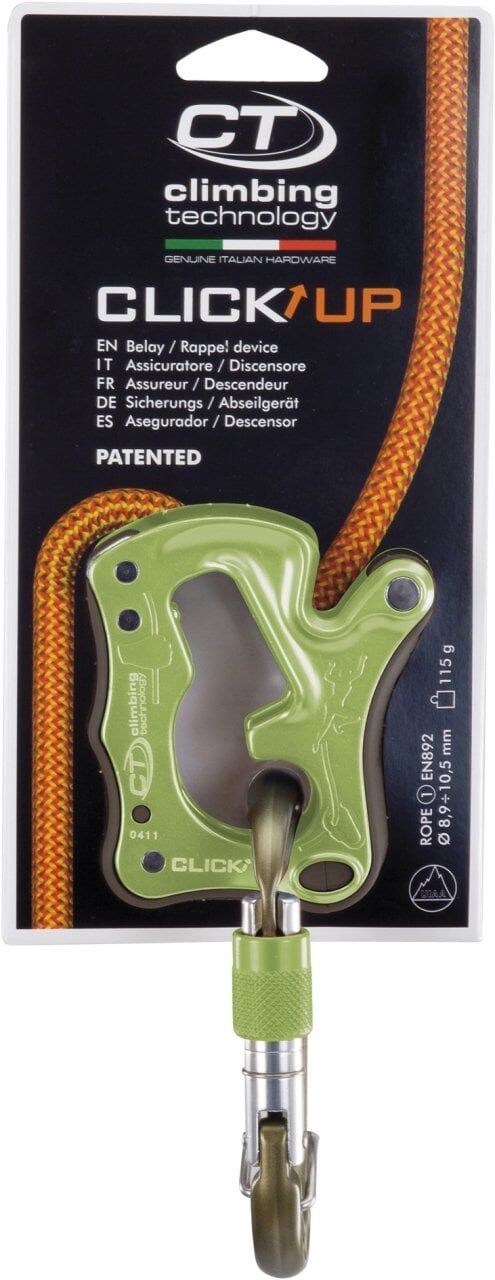 Click-Up, spor tırmanışlar için geliştirilmiş bir emniyet aleti modelidir. Kullanımı basittir. Yenilikçi tasarımı, hataları önlemek için güvenlik özelliklerine sahiptir. 8.6 - 10.5 mm'lik iplerle kullanımı uygundur. Hata yapmayı engelleyici yapıya sahiptir. Bu yüzden çocuklar ve başlangıç düzeyindeki kişiler için uygundur. Patentli bir üründür.