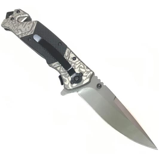- Bıçak, kordon deliği olan yerleşik bir cam kırığı ile donatılmıştır;