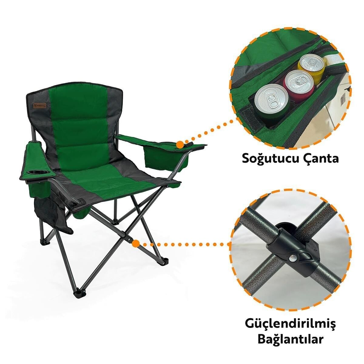 Piknik, kamp, deniz kenarında veya balık tutarken kullanabileceğiniz, isterseniz evinizde de kullanabileceğiniz portatif ve çok amaçlı bir sandalye türüdür.