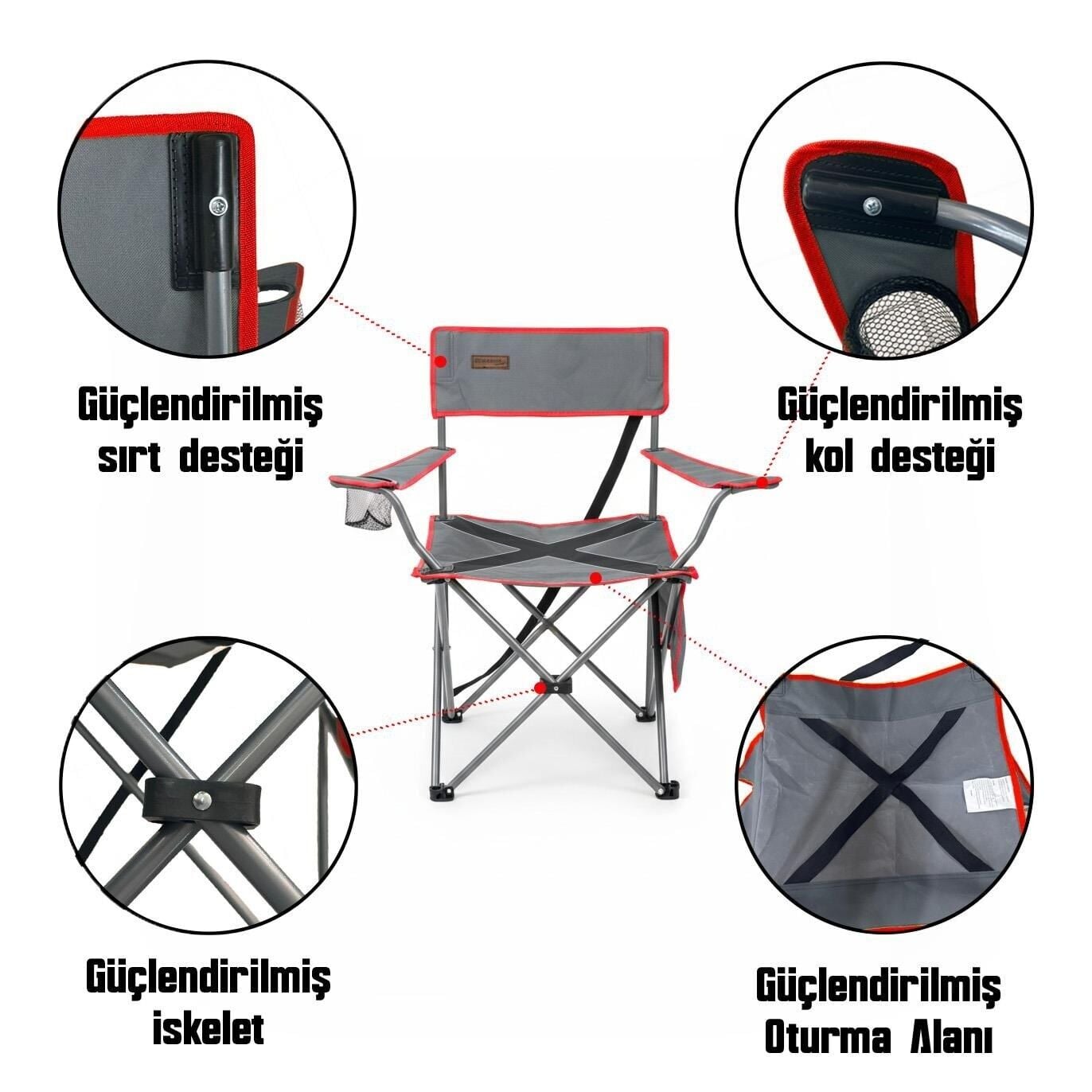 Madfox TrekMate Strap Katlanır Outdoor Koltuk KIRMIZI