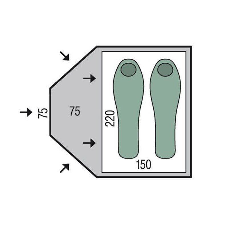 Bora 2 çadırı; Hafif, tek kapı, tek başına ve kolay kurulabilen bir çadır modelidir. İki kişilik olmasının yanı sıra, sırt çantalarını için, geniş yarım kubbe şeklinde alanı mevcuttur. Çadıra girmek için, sağ veya sol üçgen kapılar yada orta kapısı kullanılabilir. Tüm kapıları aynı anda açılabilir.