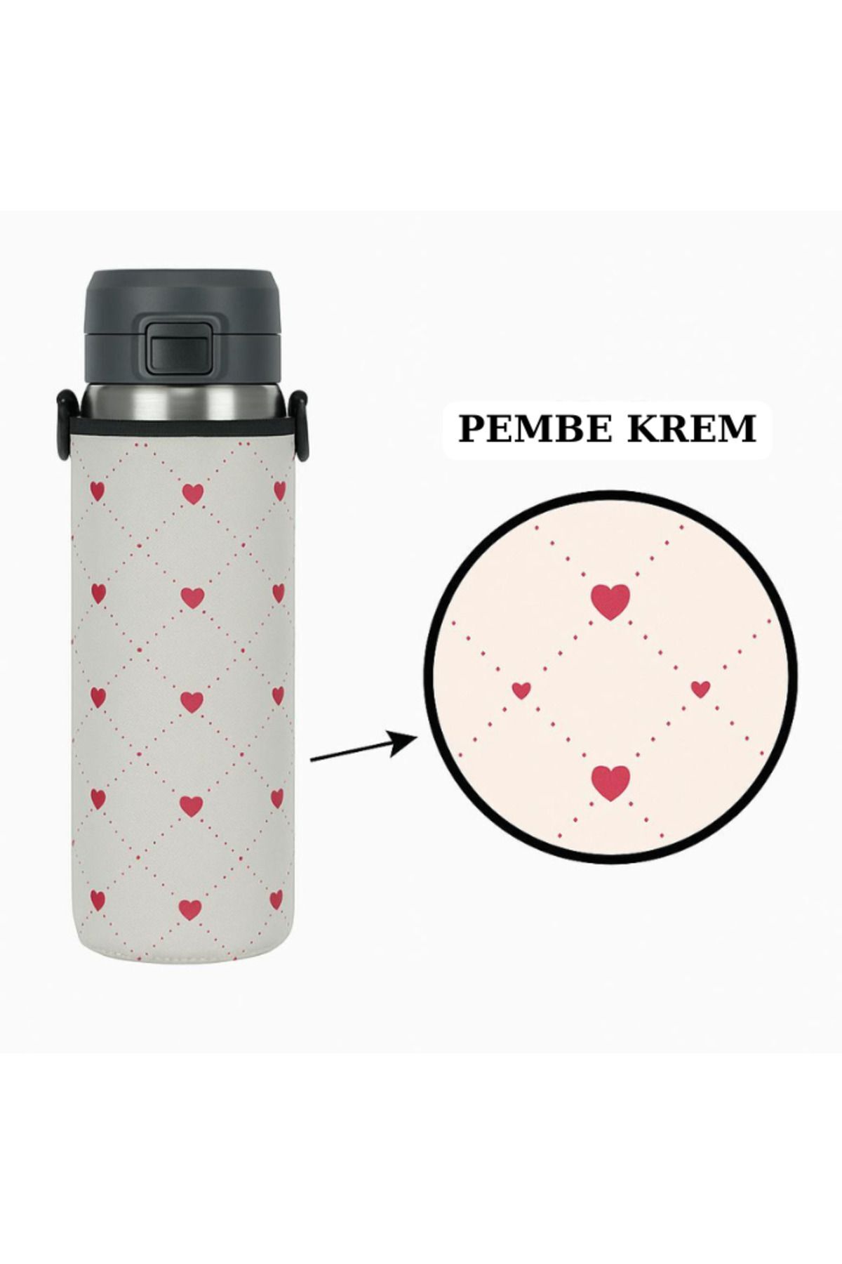 Üzerinde bulunan askı aparatı sayesinde, termosunuzu omzunuza asarak kolaylıkla taşıyabilirsiniz. Kordon boyu açık 120cm, kapalı iken 60cm'dir.