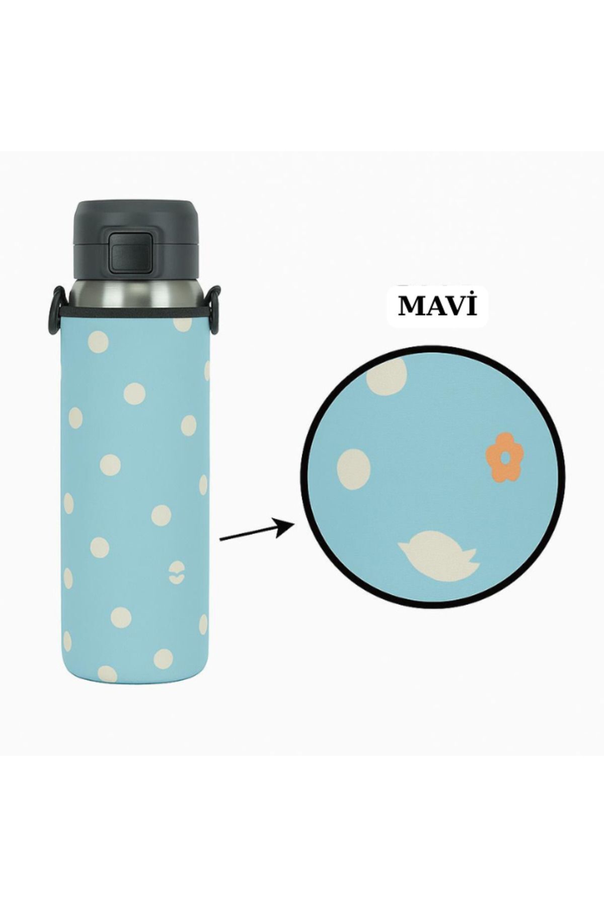 Üzerinde bulunan askı aparatı sayesinde, termosunuzu omzunuza asarak kolaylıkla taşıyabilirsiniz. Kordon boyu açık 120cm, kapalı iken 60cm'dir.
