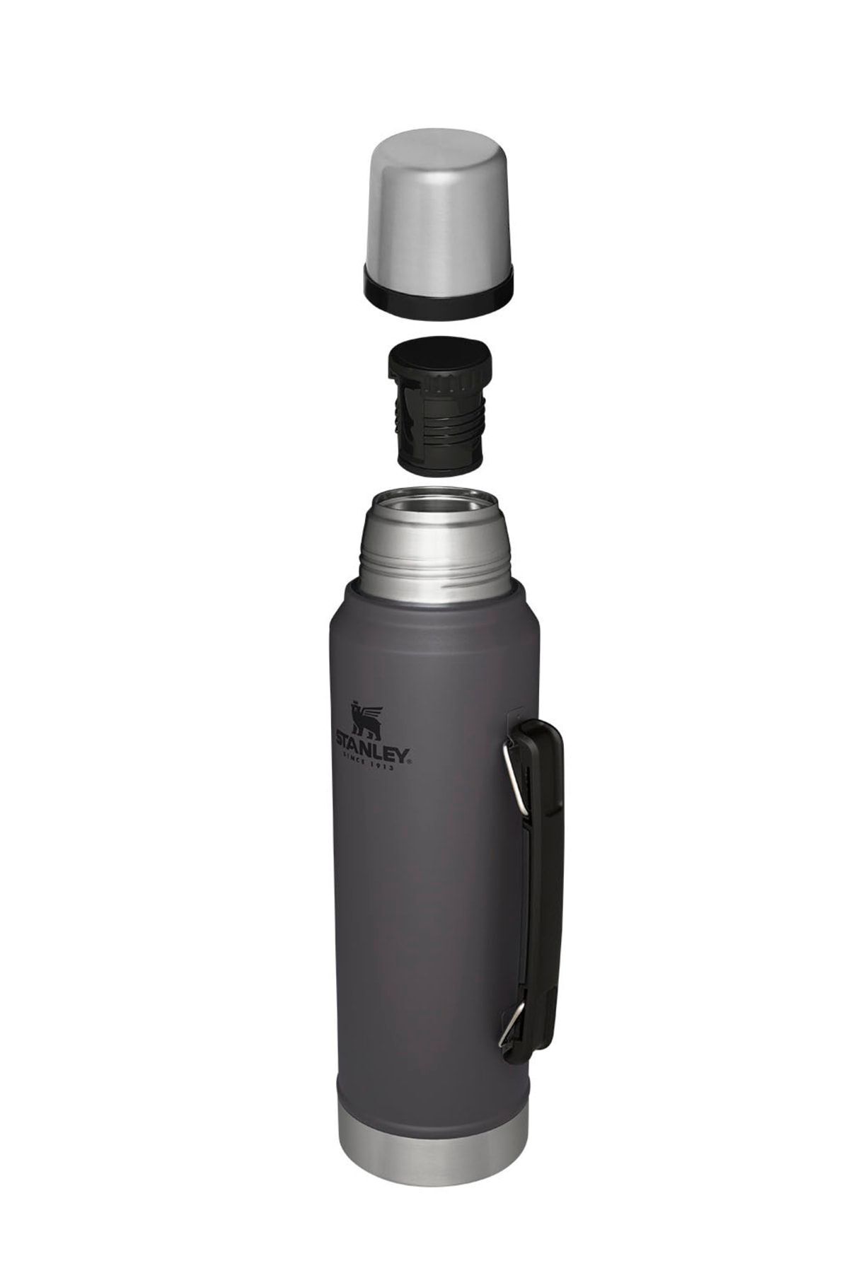 Stanley termos, sızdırmaz bir kapakla tasarlanmıştır, böylece dökülmelerden endişe etmeden sırt çantanıza koyabilirsiniz. Termosun kapağını bir fincan olarak da kullanabilirsiniz.